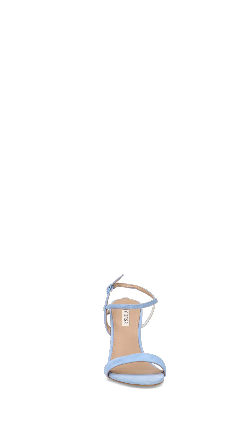 GUESS Sandalo donna azzurro in pelle scamosciata e materiale sintetico. Eleganza pura in ogni passo con questo sandalo azzurro. Il tacco a stiletto di 11 centimetri slancia la figura, mentre il cinturino avvolge delicatamente la caviglia. La morbidezza della pelle scamosciata combinata con il materiale sintetico crea un connubio perfetto per un look irresistibile.